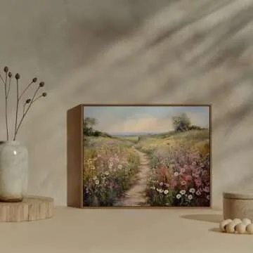 Gardenia Art Framed Flowers Path Art Prints Colorful Wildflower Field Wall Art Nature Spring Landscape Canvas Painting Vintage Floral Botanical Aesthetics Picture Farmhouse Home Wall Decor, 8x10 Inch