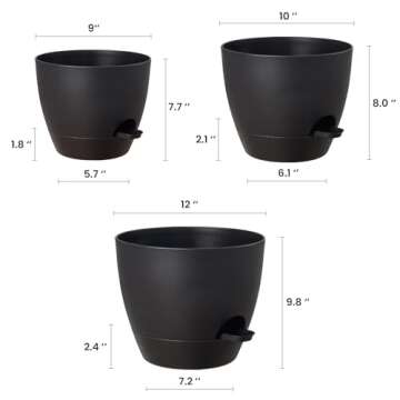 Show more Introducing our beautifully crafted set of flower pots that will revolutionize your indoor gardening experience! This Diversified Size Set features three different diameters of 12, 10, and 9 inches, perfectly accommodating a variety of plant sizes including cacti, herbs, and orchids. Ideal for both novice and experienced plant lovers, these pots are perfect for repotting your favorite plants or showcasing artificial greens. The elegant design complements any decor, making them a delightful addition to any room.