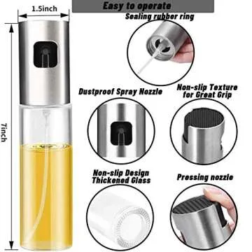 Engineered with a sleek design and user-friendly functionality, this oil sprayer not only enhances your cooking experience but also promotes healthier eating habits by allowing you to control the amount of oil you use. Say goodbye to wasted oil and cumbersome cleanup, and embrace the deliciousness of your favorite recipes with less hassle!