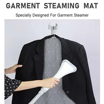 What sets this product apart is its thoughtful design, featuring a 360° Rotatable Hook that allows you to hang the steam mat anywhere! Be it on doors, garment racks, or directly on your handheld steamer, you can steam your clothes effectively without any hassle. Plus, it comes with a fitted dust cover to keep it clean when not in use, reflecting our commitment to quality and convenience.