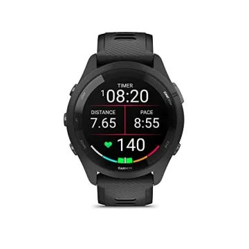 Show moreExperience the future of fitness with the Garmin Forerunner 265 Running Smartwatch. Featuring a stunning Brilliant AMOLED touchscreen display paired with intuitive traditional button controls, this smartwatch combines style and functionality in a lightweight 46 mm design. It is built for individuals who value not only aesthetics but also the portability and essential metrics that a modern athlete demands. With a remarkable battery life of up to 13 days in smartwatch mode and 20 hours in GPS mode, it's perfect for long runs, triathlons, and everyday wear.