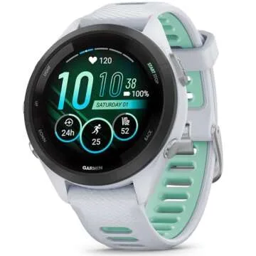 Show more Introducing the **Garmin Forerunner 265S GPS Smartwatch** in an elegant **Whitestone/Neo Tropic** color combination that marries aesthetics with functionality. This renewed model is not only economically smart but also offers all the superior features expected from the Garmin brand. With a sleek design, touch screen functionality, and advanced health monitoring capabilities, this smartwatch stands out in both performance and style. Whether you are training for your next big race, tracking your health metrics, or simply getting notifications on-the-go, this smartwatch has you covered.