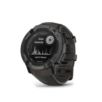 Show more Introducing the Garmin Instinct 2X Solar, a robust GPS smartwatch that defies conventional limits. Built to U.S. military standards 810 for thermal, shock, and water resistance, this rugged timepiece is crafted for adventurers and sports enthusiasts alike. Its durable 50 mm polymer case houses a large solar-charged display that ensures you're ready for every challenge. With innovative solar charging capabilities, the Power Glass lens harnesses the power of the sun, producing an incredible 50% more energy than standard solar watches, empowering you to go further and explore more.