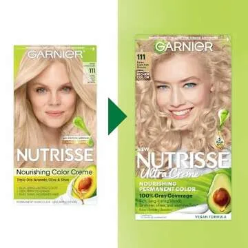 Show moreIntroducing the Garnier Hair Color Nutrisse Nourishing Creme, 111 Extra-Light Ash Blonde (White Chocolate) - a revolutionary hair coloring solution designed for those seeking a stunning cool blonde look. This permanent hair dye offers an innovative formula that effectively lifts your natural hair color by up to three levels, ensuring gorgeous, even results. With the unique ability to counteract unwanted warmth, this product not only enhances your overall hair tone but also nourishes and protects each strand during the coloring process. Every box contains two applications, making it perfect for touch-ups or full color transformations.