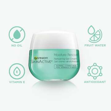 Garnier Moisture Rescue Refreshing Gel-Cream for Normal/Combo Skin, Oil-Free, 1.7 Oz (50g), 2 Count (Packaging May Vary)