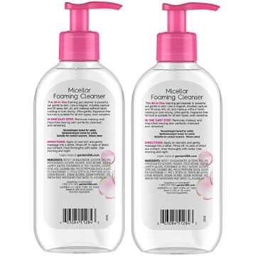 Show moreIntroducing the Garnier SkinActive Micellar Foaming Face Wash, your ultimate skincare companion available in a convenient duo pack of 6.7 fluid ounces each. This versatile cleanser is designed to simplify your beauty routine, serving as both a refreshing facial wash in the morning and an effective makeup remover in the evening. Say goodbye to harsh makeup wipes and embrace the gentle power of micellar technology! With its unique foaming formula, this cleanser effortlessly lifts away dirt, excess oil, and even the most stubborn makeup without drying out your skin. Suitable for all skin types, it's a must-have for anyone looking to maintain a clean and healthy complexion at home, or on the go.