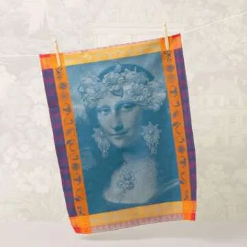 Garnier Thiebaut Mona Lisa Bleu (Mona Lisa Blue) French Kitchen Towel 22"x30", Cotton, Jacquard