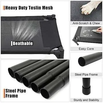 Garnpet Elevated Dog Bed for Large Dogs, Raised Dog Cot Beds Fits Up to 150 LBs, Heavy Duty Pet Cots with Durable Supportive Teslin Recyclable Washable Mesh, Indoor & Outdoor Dog Bed, Black