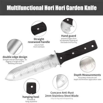 What sets the GARTOL Hori Hori Garden Knife apart from others in the market is its compact design and unparalleled quality. Unlike many garden knives that feature flimsy handles or dull blades, the all-stainless steel design coupled with an ergonomic redwood handle follows strict quality standards, making it not only an attractive option but one that proves to be reliable. Other competitors may not provide protective features like a high-grade sheath or depth scales, which enhance its usability and safety, confirming GARTOL as the superior choice.