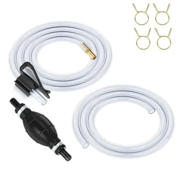 This versatile siphon pump is perfect for various applications including emergency gas transfers, aquarium maintenance, and even draining wastewater from appliances. Although not recommended for drinking water or edible oils, its robust construction makes it resilient for heavy-duty tasks. The package includes two flexible PVC hoses and a secure clamp system to prevent slips and leaks, ensuring you can rely on its performance.