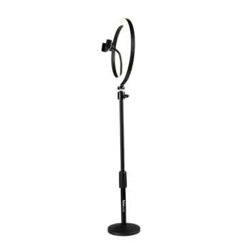 Gator Frameworks 10-Inch LED Desktop Ring Light Stand with Phone Holder and Compact Weighted Base; (GFW-RINGLIGHTDSKTP)