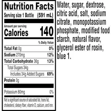Crafted with care and science in mind, Gatorade's formula does more than quench your thirst. It combines critical electrolytes to replace what’s lost in sweat with carbohydrate energy—your body's preferred source of fuel—ensuring you maintain peak performance during any physical activity. Enjoy the refreshing and delicious taste that’s enjoyed by both athletes and everyday users alike!