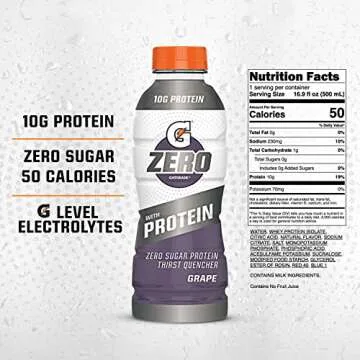 Gatorade Zero With Protein, 10g Whey Protein Isolate, Zero Sugar, Electrolytes, Grape, 16.9 Fl Oz, 12 Pack