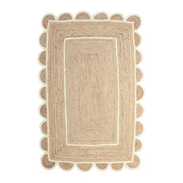 Handmade Bohemian Scalloped Jute Rug - Elegant Off White 2x3