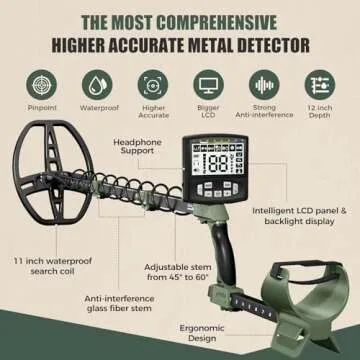 Gbnryg Professional Metal Detector for Adults,Teens[2024 Upgrade]-12" IP68 Waterproof Search Coil with LCD Backlight,5 Modes Gold Detector,Advanced DSP Chip&High Accuracy System for Beach/Gold Hunting