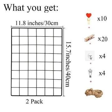 GBYAN Wall Grid 2 Pack Wire Photo Grid Panels Black Memo Board Wall Organizer (black)