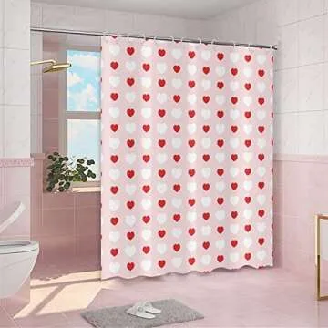 GCIREC Valentine's Day Shower Curtain, Weighted Bottom Romantic Love Theme Pink and Red Little Heart Fabric Bathroom Curtain Home Decor Waterproof Washable with 12 Hooks,72"x72"
