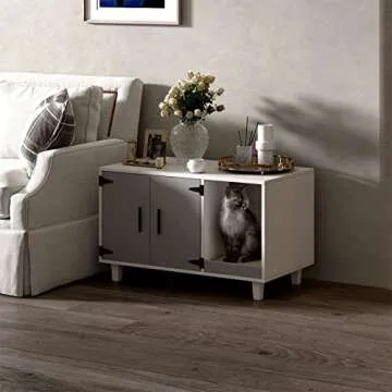 GDLF Modern Wood Pet Crate Cat Washroom Hidden Litter Box Enclosure Furniture House as Table Nightstand with Scratch Pad,Stackable (Gray & White)