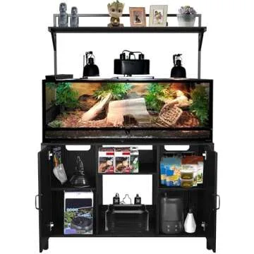 Beyond just a tank stand, this innovative piece features significant storage solutions, allowing you to keep your reptile food, habitat decor, health supplies, and lighting accessories organized and easily accessible. Never worry about clutter again, as the GDLF stand is designed to help you manage your supplies without compromising on style.