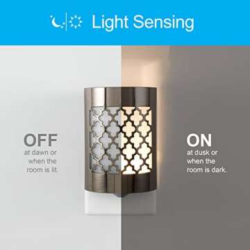 Show moreIlluminate your living spaces with the enchanting GE CoverLite LED Night Light, featuring a stunning Moroccan design and a sleek brushed nickel finish that seamlessly blends with your home decor. This exquisite night light is more than a mere accessory; it transforms dull outlets into vibrant decorative elements while providing gentle illumination. Ideal for creating a tranquil atmosphere in bedrooms, hallways, kitchens, and bathrooms, it combines functionality with style effortlessly. The automatic on/off sensing technology ensures that you enjoy light only when you need it, turning on at dusk and off at dawn without any effort on your part. So, you can enjoy the soothing ambiance without the hassle of switching lights on and off. It’s an essential addition to any home.
