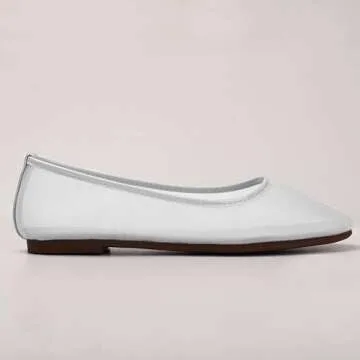geabal Mesh Flats for Women Slip On Ballerina Shoes Round Toe Comfortable Casual Work Dress Shoes Alaiaed Ballet Flats White