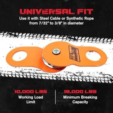 GearAmerica Winch Snatch Block Pulley, 9 US Ton (18,000 Lbs) Heavy Duty Block and Tackle Pulley for Synthetic Rope or Steel Cable, Recovery Accessory for Truck, Tractor, ATV, UTV - 2 Pack, Orange
