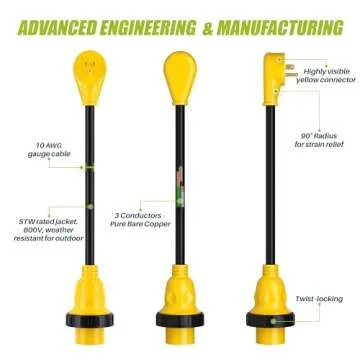 GearIT 30 Amp to 15 Amp 110 Volt RV Adapter Cord with Locking Connector, 30Amp Female to 15Amp Male Dogbone RV Trailer Camper, NEMA 5-15P L5-30R, STW 10 Gauge Heavy Duty Electrical Power - 12in, 1ft