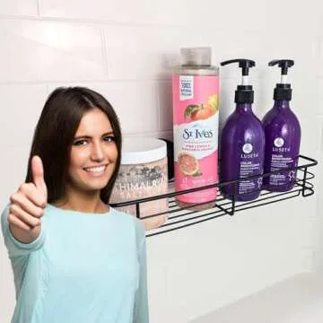 Show more Discover the ultimate solution to your bathroom organization with our innovative Shower Caddy Organizer. This remarkable product combines functionality with efficient design, ensuring that all your shower essentials are accessible and neatly arranged. Thanks to its powerful suction cup technology, this caddy can hold up to 44 pounds, making it perfect for your shampoo, conditioners, body wash, and more.