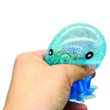 But that’s not all! These enchanting toys are filled with air and glitter, creating a squishy and satisfying sensory experience that encourages fidgeting and play. With each squeeze, kids will be captivated by the pleasant noises, making them a great option for children of all ages—including those in need of a sensory outlet or who enjoy squishy toys. Available in a variety of bright colors (blue, pink, green, and purple), these octopus fidget toys not only stimulate playful interaction but also add a pop of color to any space!