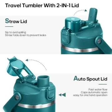 Gedux 32 oz Stainless Steel Tumbler with Handle and Straw, Vacuum Insulated Water Bottle with 2-in-1 Lid (Chug Lid/Straw Lid) and Silicone Boot, Cupholder Friendly Gifts for Women and Men