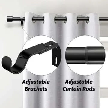 GEEBOBO Black Curtain Rods for Windows 72 to 144 Inch, 1 Inch Adjustable Heavy Duty Easy Install Curtain Rods Set for Outdoor, Patio, Farmhouse, Bedroom, Living Room (Black, 30"-150")