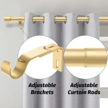 GEEBOBO Gold Curtain Rods for Windows 66 to 120 Inch, 1 Inch Adjustable Heavy Duty Easy Install Curtain Rods Set for Outdoor, Patio, Farmhouse, Bedroom, Living Room (Gold, 30"-120")