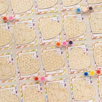 Show more Celebrate love and creativity this Valentine's Day with the stunning GEECOZYLIFE Valentines Day Gifts for Kids - 28 Pack Heart Barn Quilt Mosaics Kits. This delightful package is perfect for fostering artistic expression in children while making beautiful heartfelt crafts for friends and family. Each set includes 28 heart-shaped barn quilt mosaics crafted from premium wood, along with mini watercolor paints, brushes, and adorable Valentine's exchange cards for a complete crafting experience. Designed specifically for young artists, this kit provides all the essential tools needed to create personalized gifts that are as unique as they are.