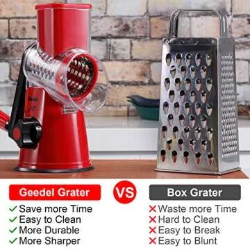 Geedel Rotary Cheese Grater, Kitchen Mandoline Vegetable Slicer with 3 Interchangeable Blades, Easy to Clean Grater and Vegetable Chopper, Onion Chopper Pro Food Chopper, Kitchen Slicer