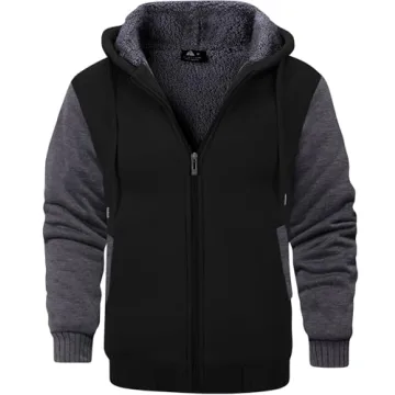 GEEK LIGHTING Men's Heavyweight Fleece Zip Up Hoodie - Sherpa Lined XXL