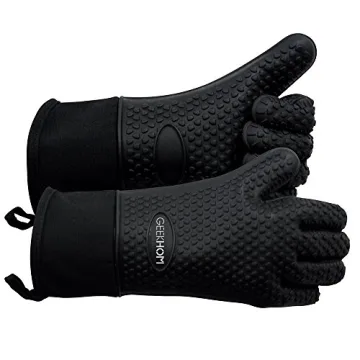 GEEKHOM BBQ Gloves - Grilling & Heat Resistant Silicone Oven Mitts for Cooking