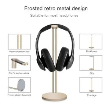Show moreIntroducing the Geekria Aluminum Alloy Headphone Holder, a perfect blend of elegance and functionality designed to keep your over-ear headphones or gaming headset neatly displayed. Crafted from premium aluminum alloy, this holder not only offers durability but also features a sleek matte gold finish that complements any décor. Measuring just the right size, it fits comfortably on your desk or nightstand, ensuring that your headphones are always within reach while adding a touch of sophistication to your space. Its solid heavy base guarantees stability, making it a reliable stand for your valuable audio equipment. No more tangled wires or damaged headphones; this stand ensures your favorite gear is protected and showcased beautifully.
