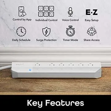 Geeni Smart Surge Protector 6-Outlet Power Strip – Wi-Fi Enabled with Voice Control (Alexa, Google Assistant), Energy Monitoring, Surge Protection, 3ft Extension Cord, Remote Access
