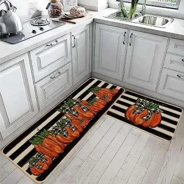 GEEORY Fall Kitchen Mats Set of 2, Striped Pumpkins Bowknot Floor Mat Farmhouse Seasonal Holiday Thanksgiving Decorations 17x29 and 17x47 Inch (Striped) GK068