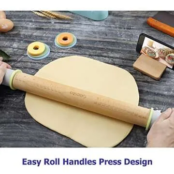 Show moreIntroducing the Geesta Adjustable Wood Rolling Pin – your ultimate baking companion that combines style with functionality. Crafted from 100% natural beech wood, this high-quality rolling pin is designed to meet the diverse needs of both novice and experienced bakers. Measuring 14 inches in length, and with an adjustable total length of 23 inches featuring five colorful thickness rings and convenient handles, it offers versatility that enhances your baking experience. The unique handlepress design allows you to exert maximum pressure for seamless dough rolling, while the measurement markings in inches and centimeters etched directly onto the pin ensure precision for all your recipes.