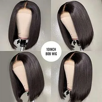 Geeta Human Hair Lace Front 13x4 Wigs Bob 10 Inch 180 Density Brazilian Virgin Human Hair Short Bob Wigs Straight Hair Natural Color