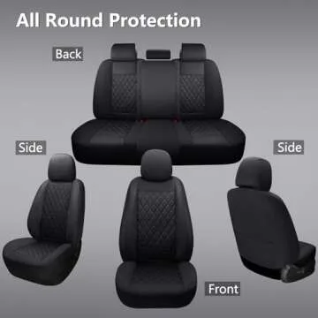 GEEYONTEK Premium Leather Car Seat Covers Full Set,Universal Fit for Cars,Trucks&SUVs,Waterproof Car Seat Cushion,Full Coverage Car Seat Protector with 5 Seats,Black