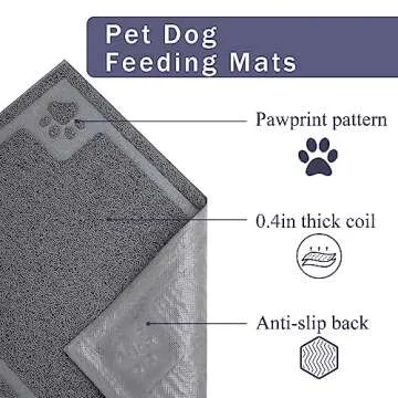 Show moreMeet the Gefryco Pet Dog Feeding Mat, your must-have solution for a cleaner, more organized feeding area for your beloved furry friends. Available in two perfect size options, 24" x 16" and 36" x 24", this mat is designed to accommodate the needs of most dogs and cats. Crafted from high-grade ECO-friendly PVC loop-shaped elastic fiber, it offers a super soft texture that is exceptionally gentle on sensitive paws, ensuring your pets feel comfortable while eating or resting.