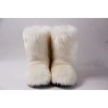 Gegefur Women's Faux fur Boot Furry Fluffy Short Snow Boot Mid-Calf Boots Warm Comfortable Outdoor Flat Shoes (Cream, numeric_8)