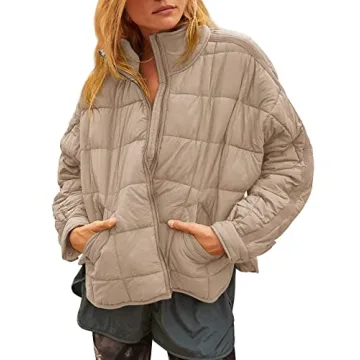 GeGekoko Women's Lightweight Oversized Long Sleeve Zip Water Resistant Packable Puffer Jacket Warm Short Winter Coat