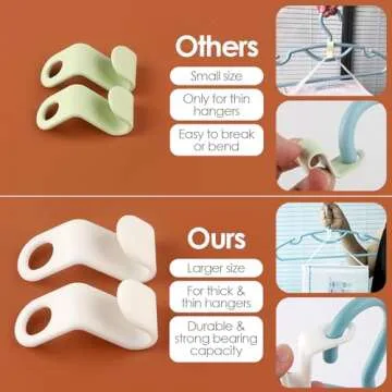 Show more Transform your wardrobe with the Geilihome Large Clothes Hanger Connector Hooks! This innovative set of 60 cascading hooks is designed to revolutionize how you organize your closet. Crafted from premium original materials, these connector hooks provide a reliable solution for maximizing space in any wardrobe. Their durable, sturdy construction ensures they can support a heavy load of up to 50 pounds, making them not only effective but incredibly dependable. Designed to fit most standard plastic hangers, including thicker bar types, these hooks will help you effortlessly create additional hanging space, perfect for your T-shirts, coats, jackets, belts, neckties, and scarves. You can wave goodbye to clutter and experience the joy of an organized closet with ease!