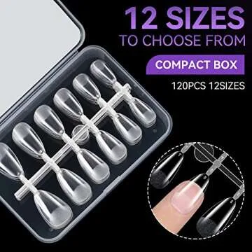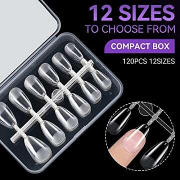 With a design that smoothly contours to your nail from cuticle to free edge, these tips guarantee a natural look. Each set includes an impressive 120 pieces, featuring 12 different sizes for maximum flexibility, making it easy for anyone to find the perfect fit. No more compromise on style!