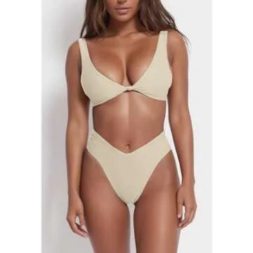 geluboao Apricot Bikini Sets for Women Sexy V Neck Kont Front Push Up Bikini Top High Waisted Bikini Bottom XS