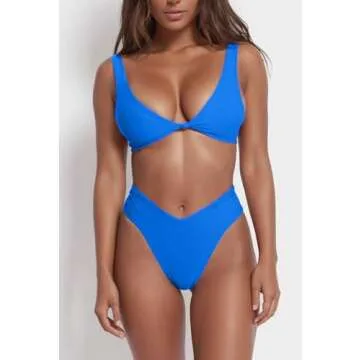 geluboao Blue V Cut High Waisted Bikini Sets for Women Solid Padded Push Up Swimsuit Cheeky High Leg Two Piece Bathing Suit M