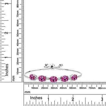 Gem Stone King 925 Sterling Silver Oval Pink Created Sapphire and White Topaz Tennis Bracelet For Women (8.59 Cttw, Fully Adjustable Up to 9 Inch)